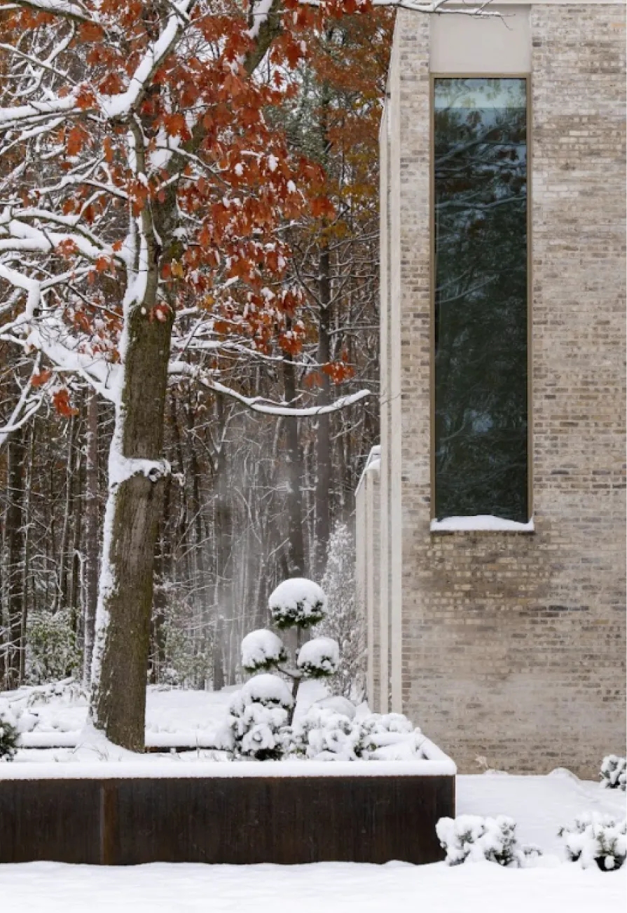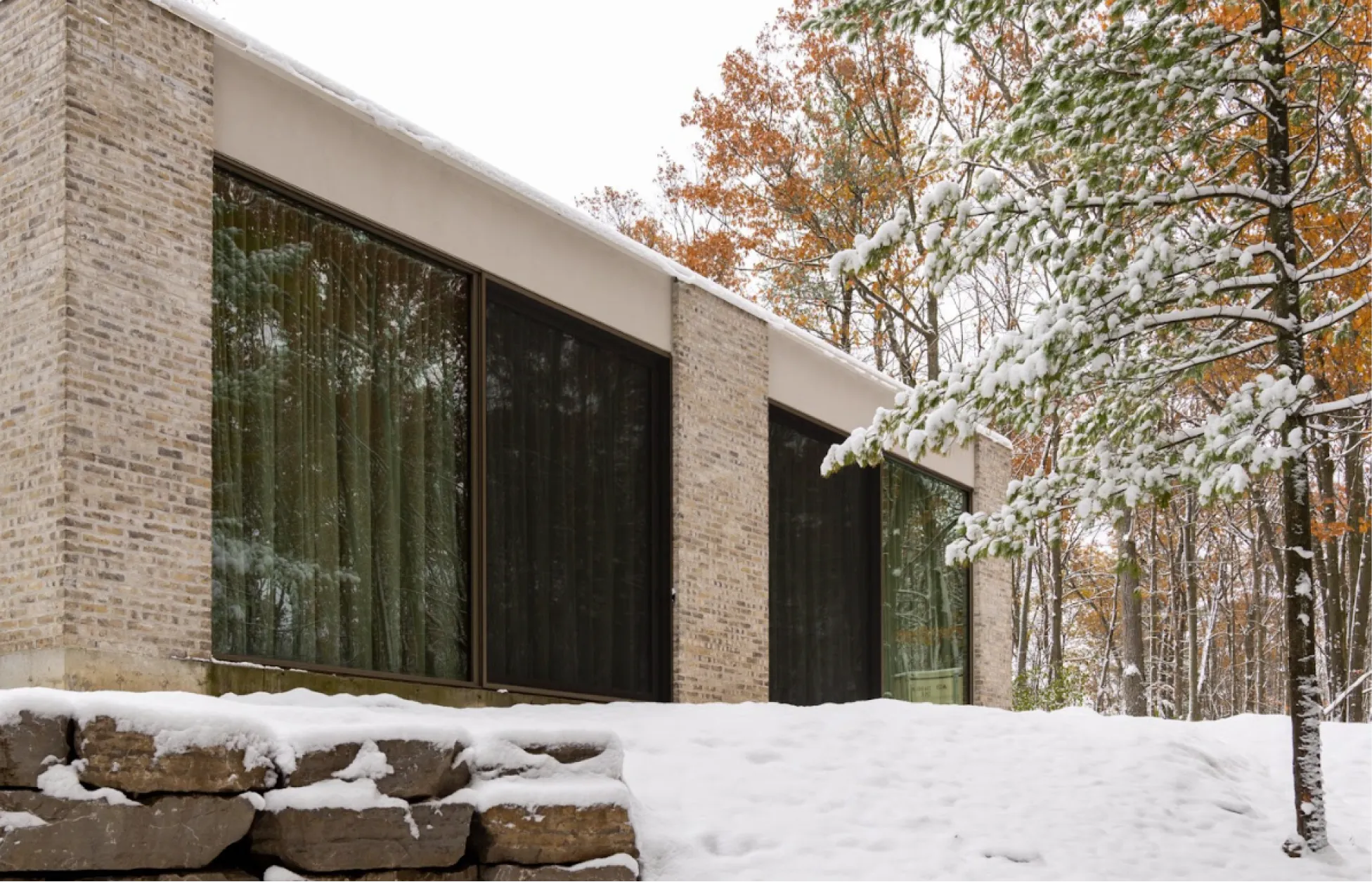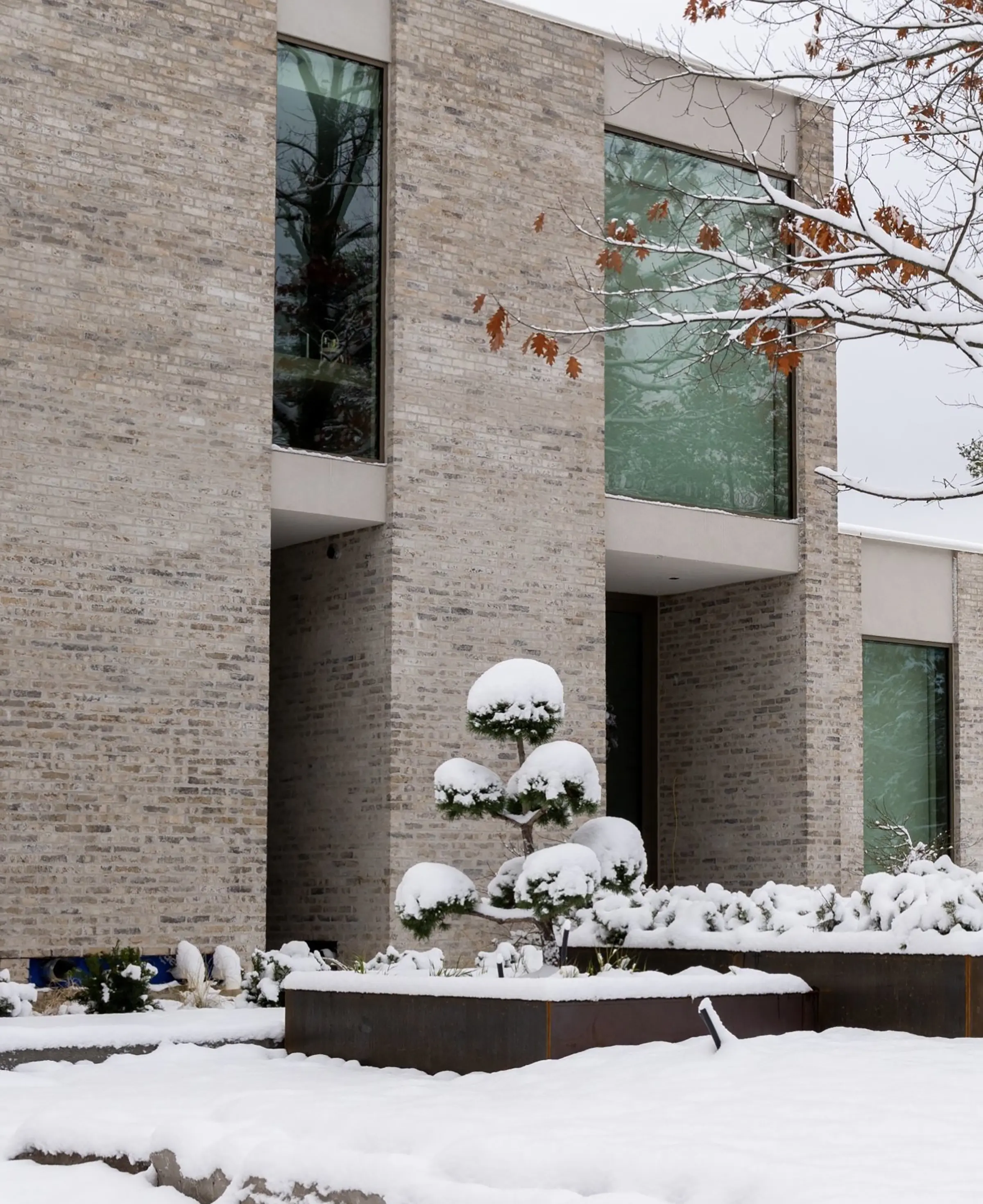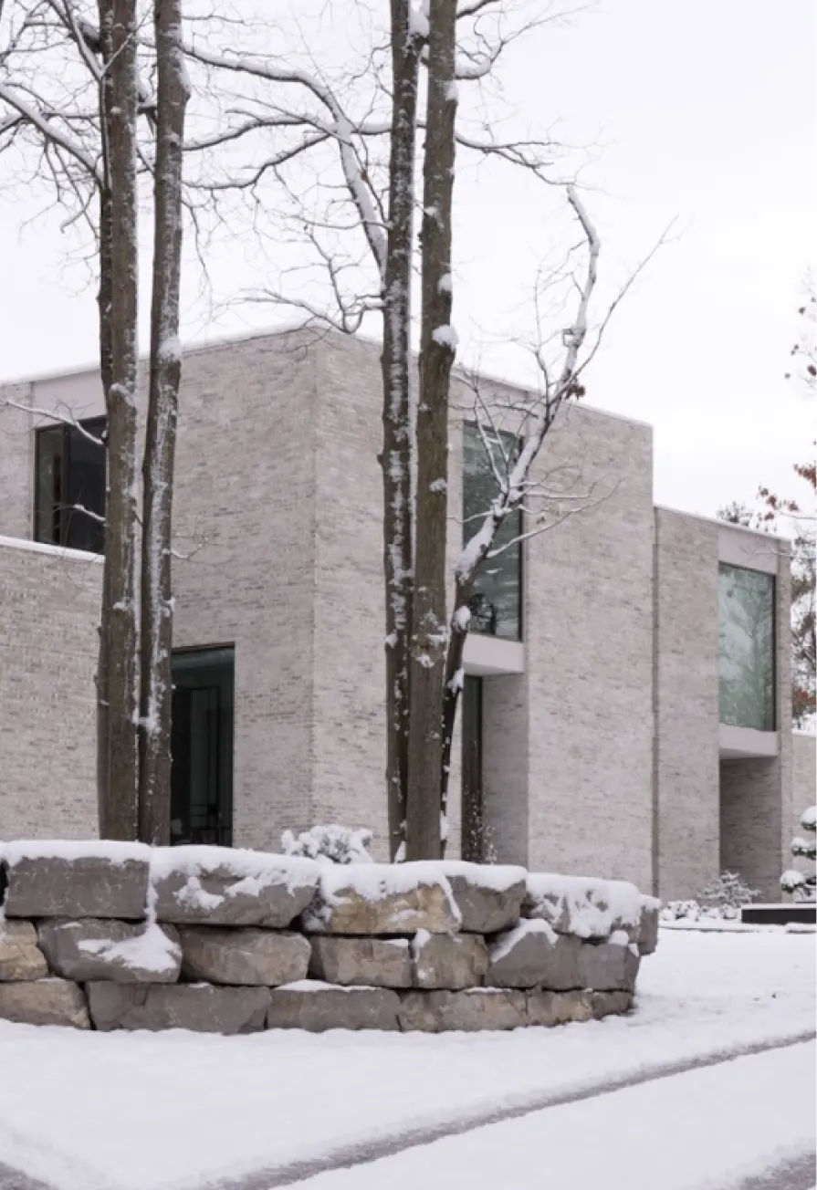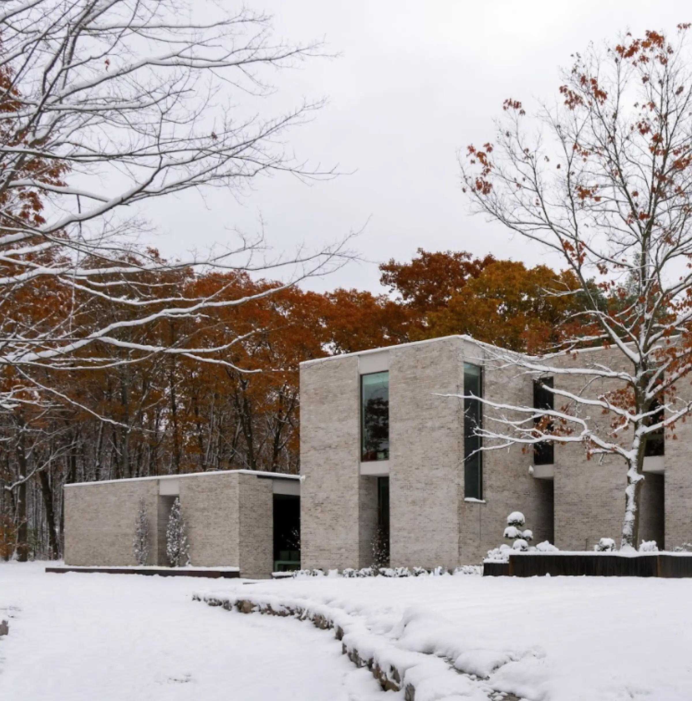 Project Sand Castle is a contemporary residence composed of a main house and a guest pavilion set within the wooded landscape of Cedar Valley along Vivian Road. The project is organized as a series of rectilinear brick volumes carefully positioned within the site. Defined by measured proportions, material consistency, and strategically placed openings, the architecture frames views of the surrounding forest while modulating light, privacy, and spatial sequence. The result is a quiet yet rigorous composition that establishes a clear relationship between the built form and the landscape.