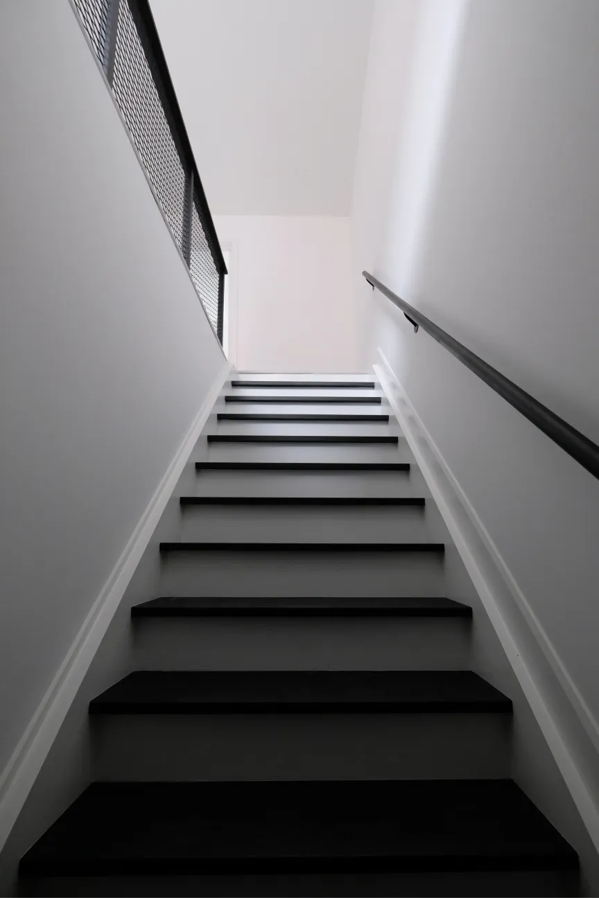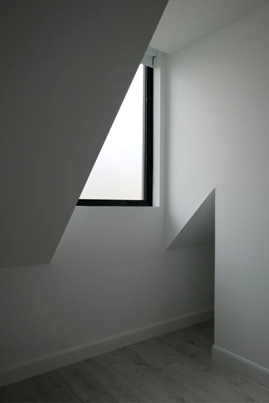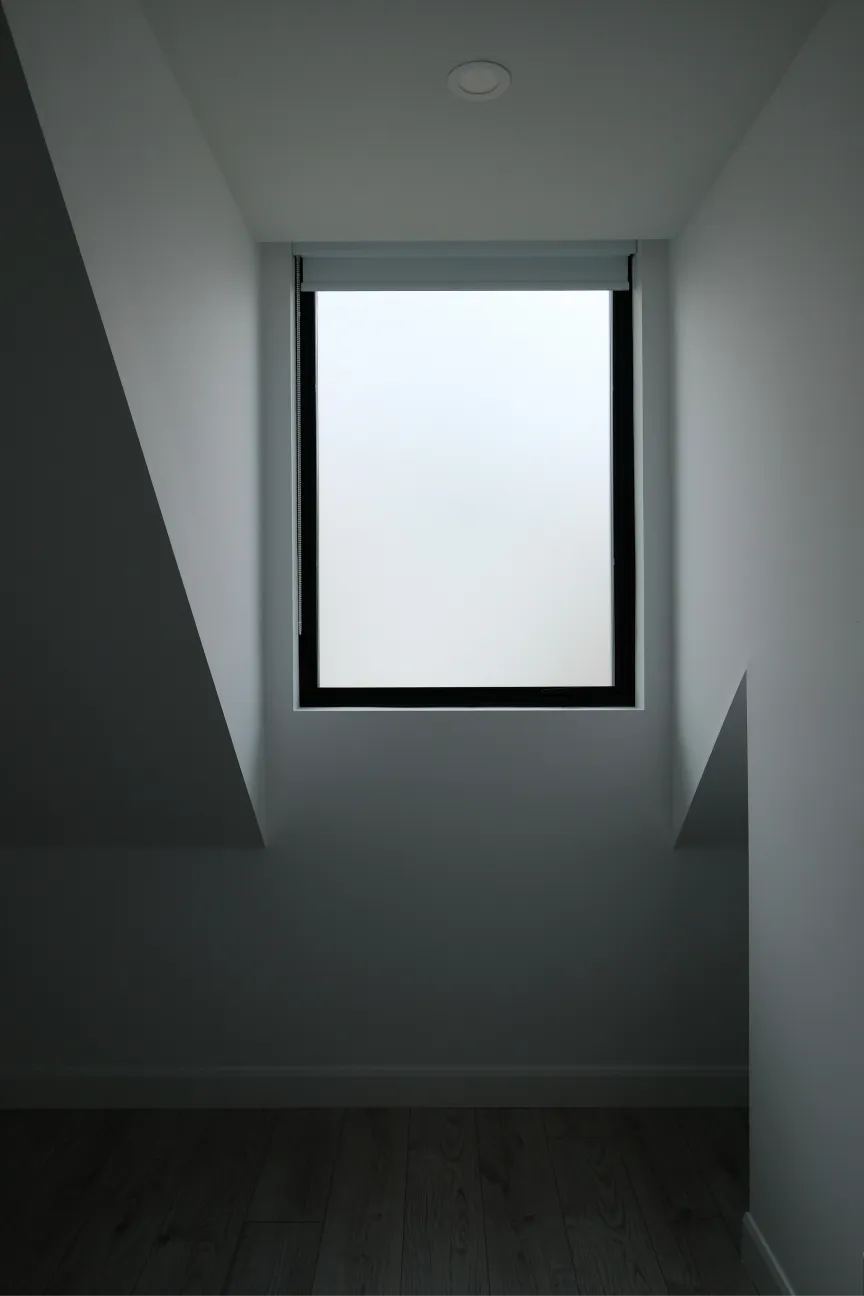 Here, the ground floor serves as the garage for the homeowners, while the second floor contains a rental suite with all the amenities of a condo unit. The house is clad in a combination of painted brick and metal. Foundations were kept very light which facilitated a fast and cost effective construction.